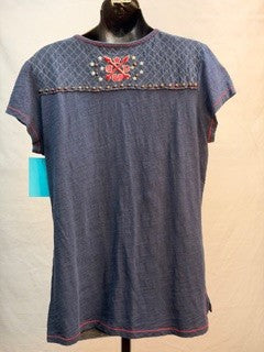 CF49-12 PURPLE VELVET TUNIC W/BEADED FLORAL-S