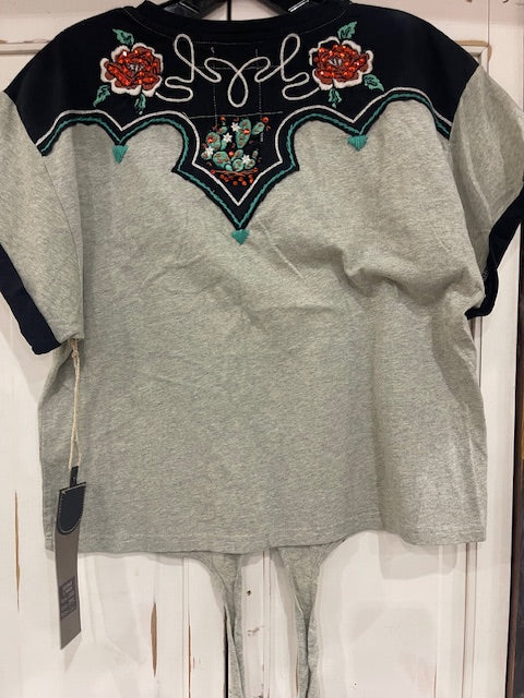 CF33-61 BLK/WHT BLOUSE STAR & FRINGE-LRG
