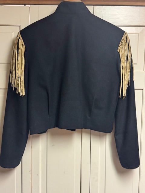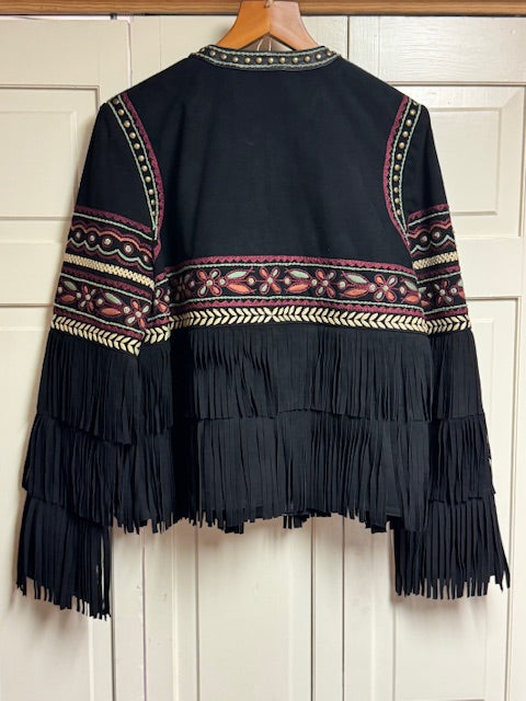 CF40-11 BLK SUEDE ZIP JKT W/FRINGE & STITCH XL