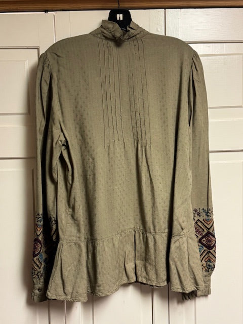CF40-16 OLIVE BLOUSE W/STICH BOTTOM SLEEVE-M
