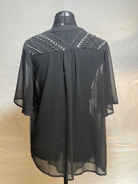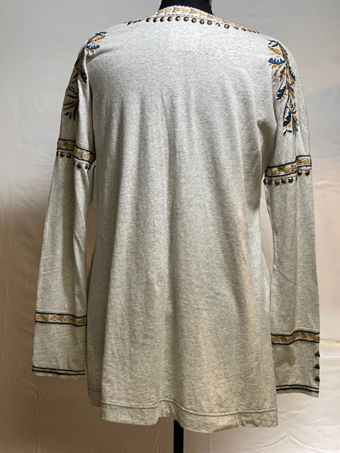 CF38-18 GREY TOP W/GOLD & BLUE STITCH, STUDS-L