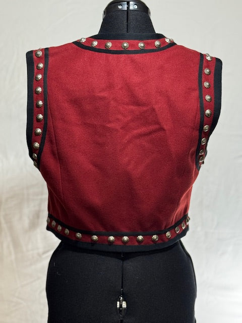 CF42-7 RED WOOL VEST W/BLK TRIM & STUDS-S