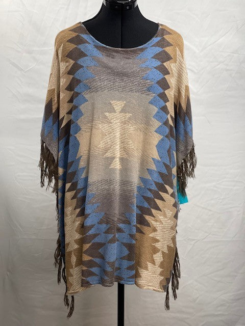 LIGHTEIGHT KNIT ONCHO WITH FRINGE