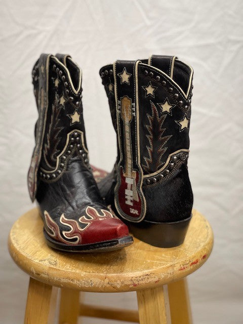 THESE BOOTS HAVE IT ALL -- HAIR ON HIDE, STARS, FLAMES!