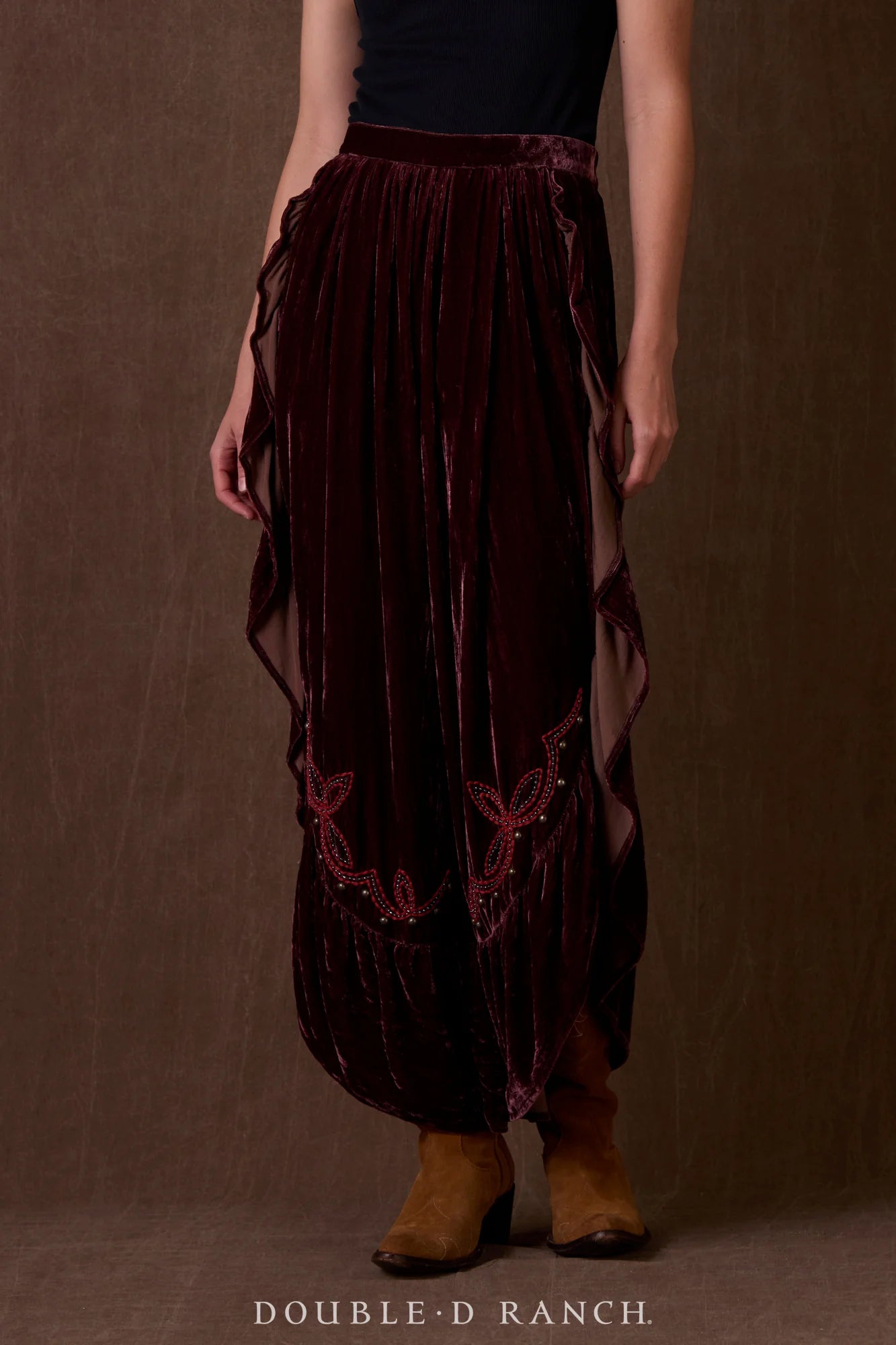 - fit: faux wrap legs sewn shut to the knee, pull-on elastic waist, ruffle hem ankle length