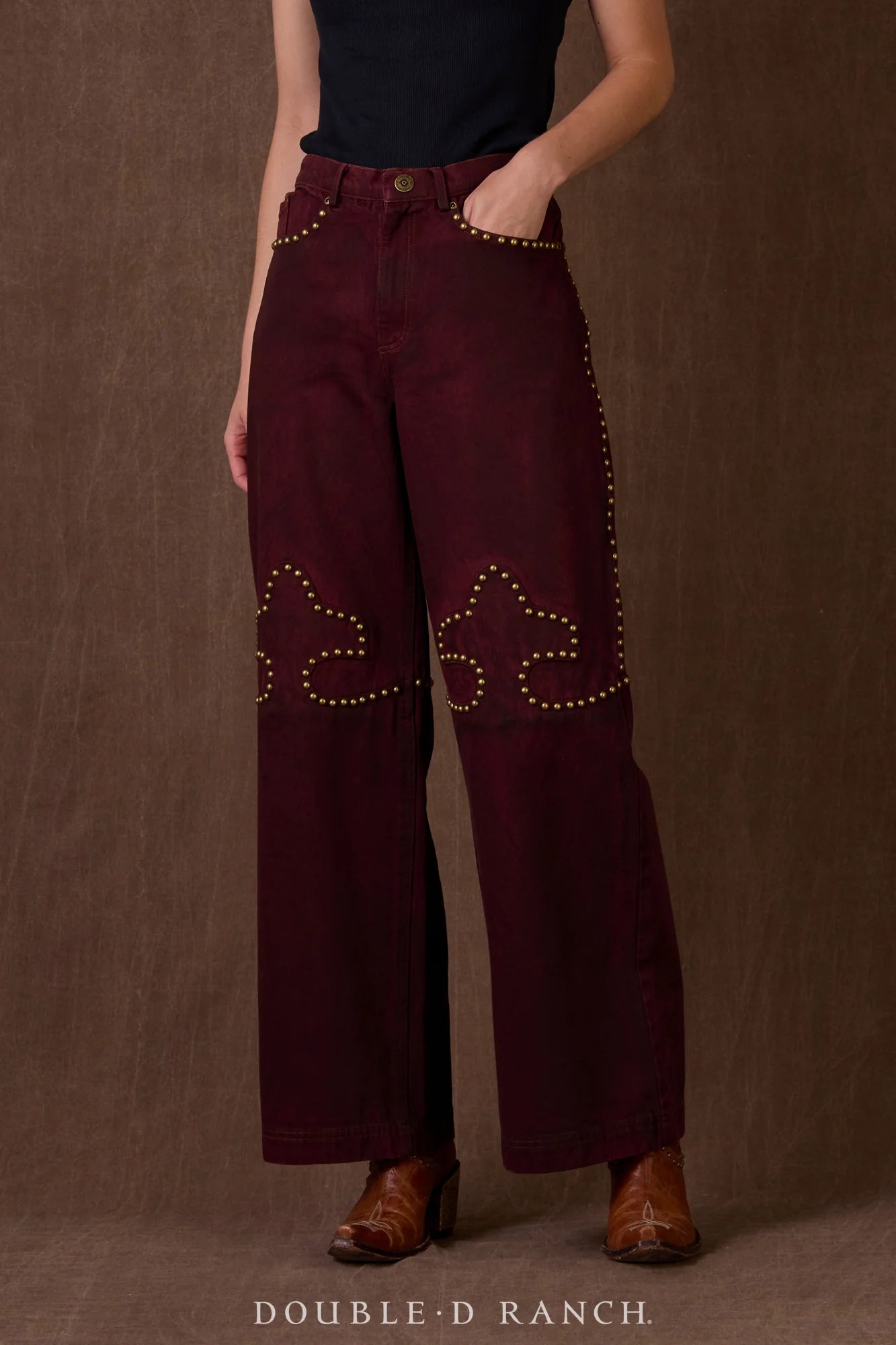 Sure, they’re classic cut wide-leg denim that’s made to fit and feel like your favorite jeans, but that deep rich oxblood hue brings them to life in a whole new way, and the unexpected brass studding details elevate them to something else entirely. They’re head-turners, and we’re so here for it!